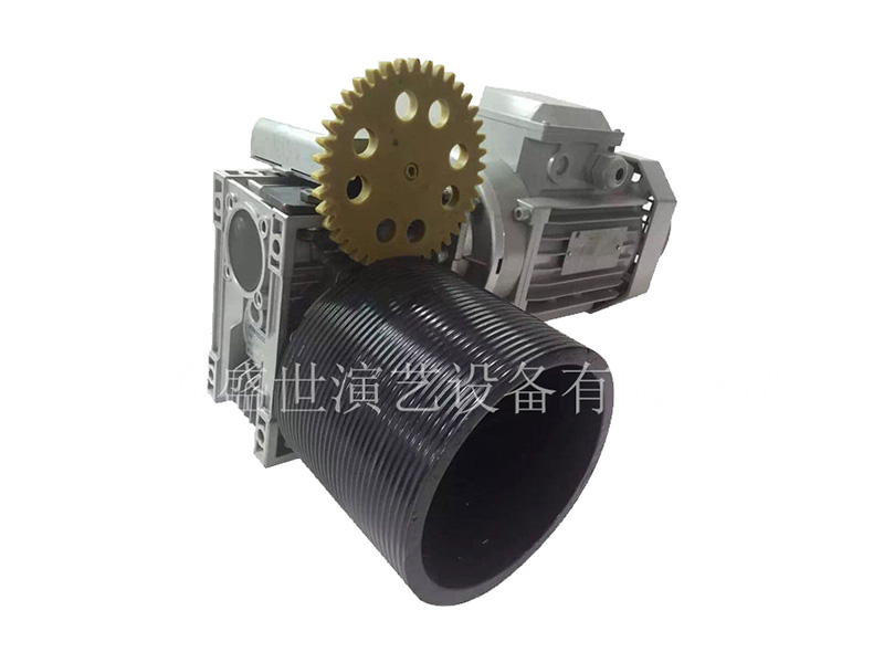 2.大幕机具体组成部分:大幕机钢结构架、对开幕导轨、均匀收缩机构、电线收纳装置。提升卷扬装置:包括电动机、减速器、制动器、卷筒等。各自的滑轮组件。各自的钢丝绳和配件。